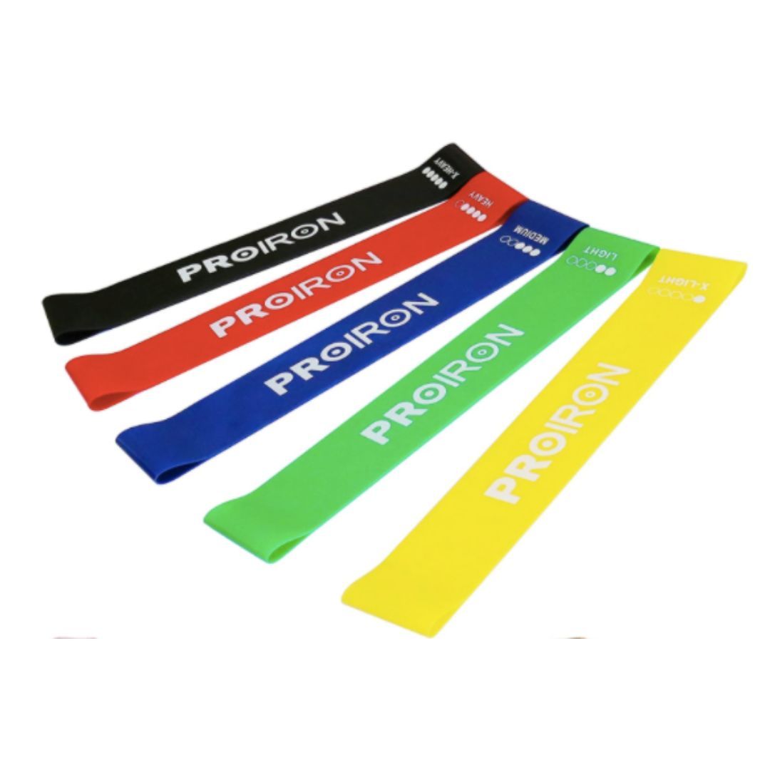 This set includes 5 x resistance bands of different strengths